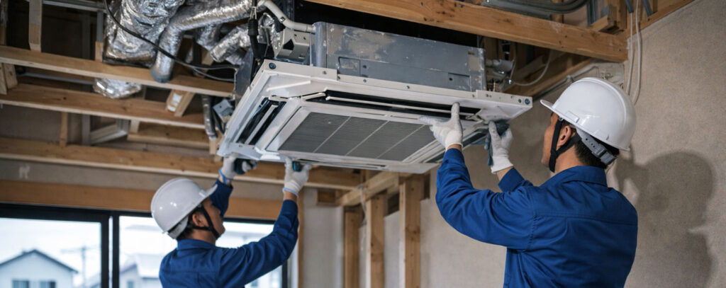 当社は福井に密着し、地域の皆さまの暮らしや事業を支える電気工事・空調工事を行っており、新築・増築・リフォームに伴う配線工事や各種設備工事をはじめ、エアコンの設置・更新・メンテナンスまで幅広く対応し、快適で安心できる環境づくりをトータルでサポートしております。